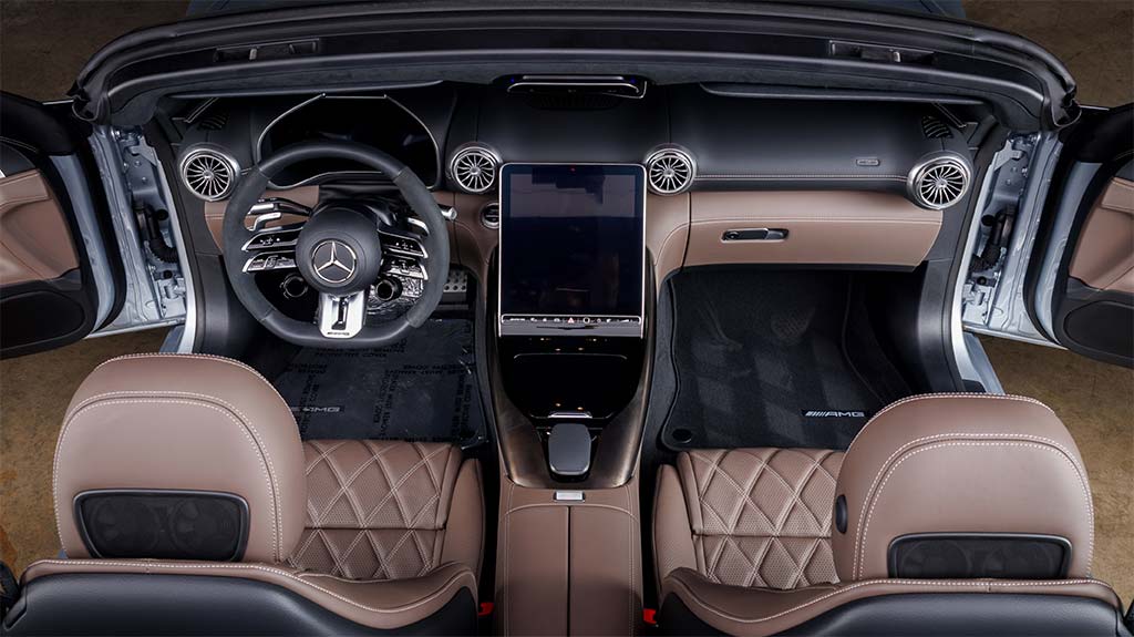 Son style traduit parfaitement ce repositionnement. Plus large, plus expressive, visuellement plus basse et plus tendue, la R232 cherche moins à incarner l’élégance bourgeoise traditionnelle de la SL qu’une forme de sportivité haut de gamme très contemporaine. L’habitacle suit la même logique, avec une présentation plus spectaculaire, plus numérique et plus proche du reste de la gamme AMG.