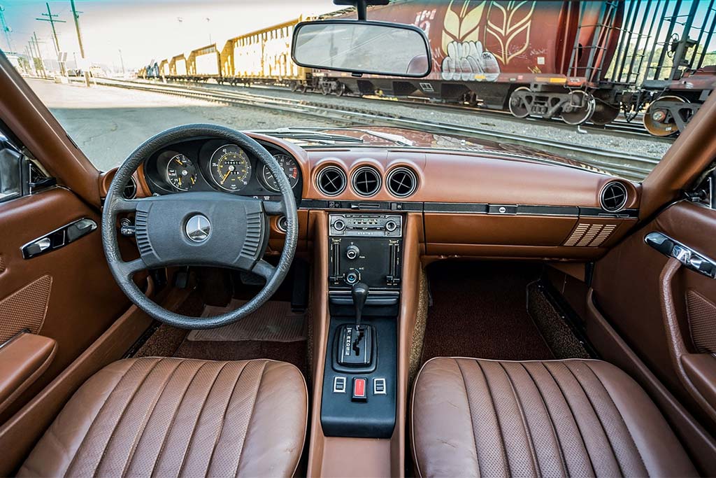C’est sans doute ce qui la distingue le plus des premières SL. Là où la 300 SL faisait encore rêver par son lien avec la compétition, et où la Pagode tentait un équilibre entre agrément et raffinement, la R107 assume pleinement son rôle de GT décapotable. Elle est faite pour rouler longtemps, avec aisance, dans un haut niveau de confort et avec cette sensation très particulière de sérénité propre aux Mercedes de cette époque.