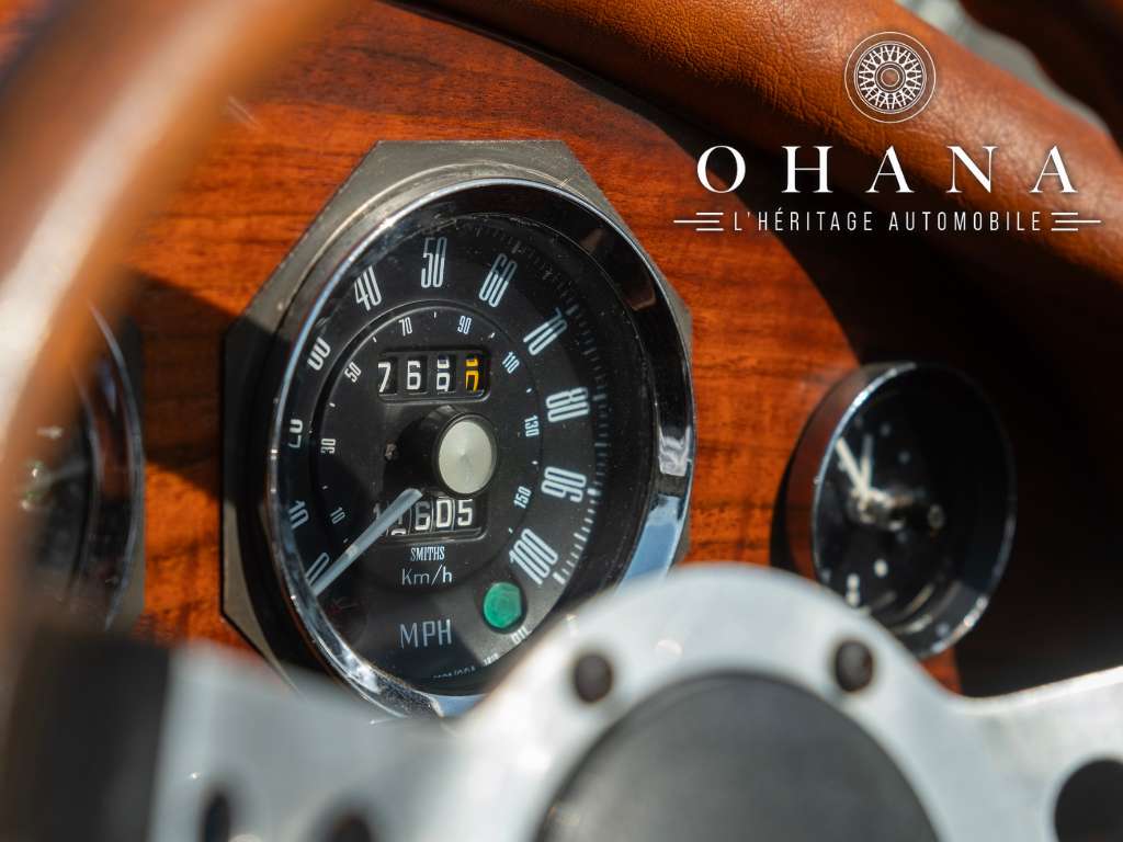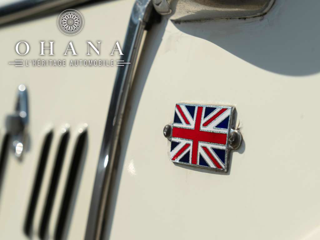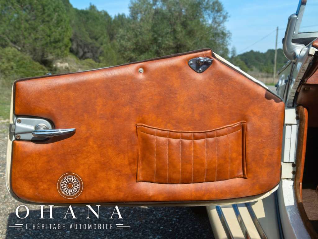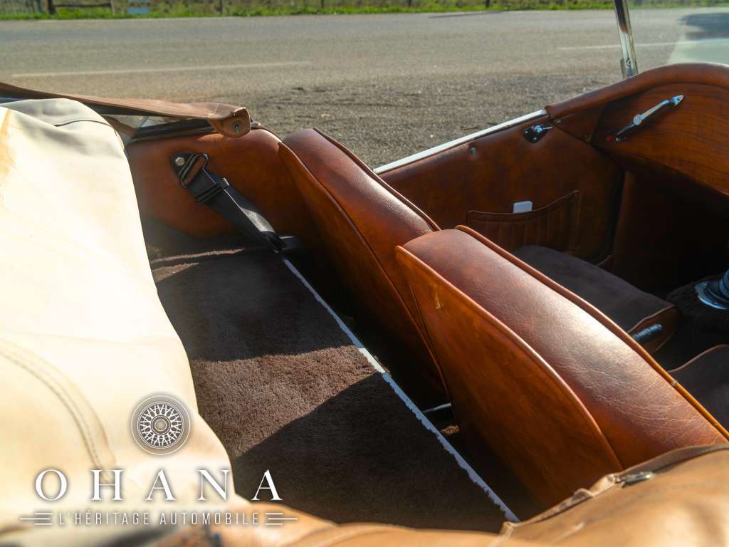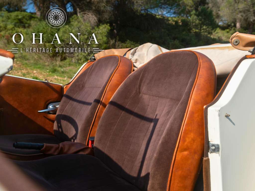 Avec sa superbe présentation bicolore crème et blanc, ses lignes rétros pleines d’élégance et son habitacle chaleureux mêlant velours marron, cuir et boiseries, cette auto offre une présence rare et délicieusement intemporelle.